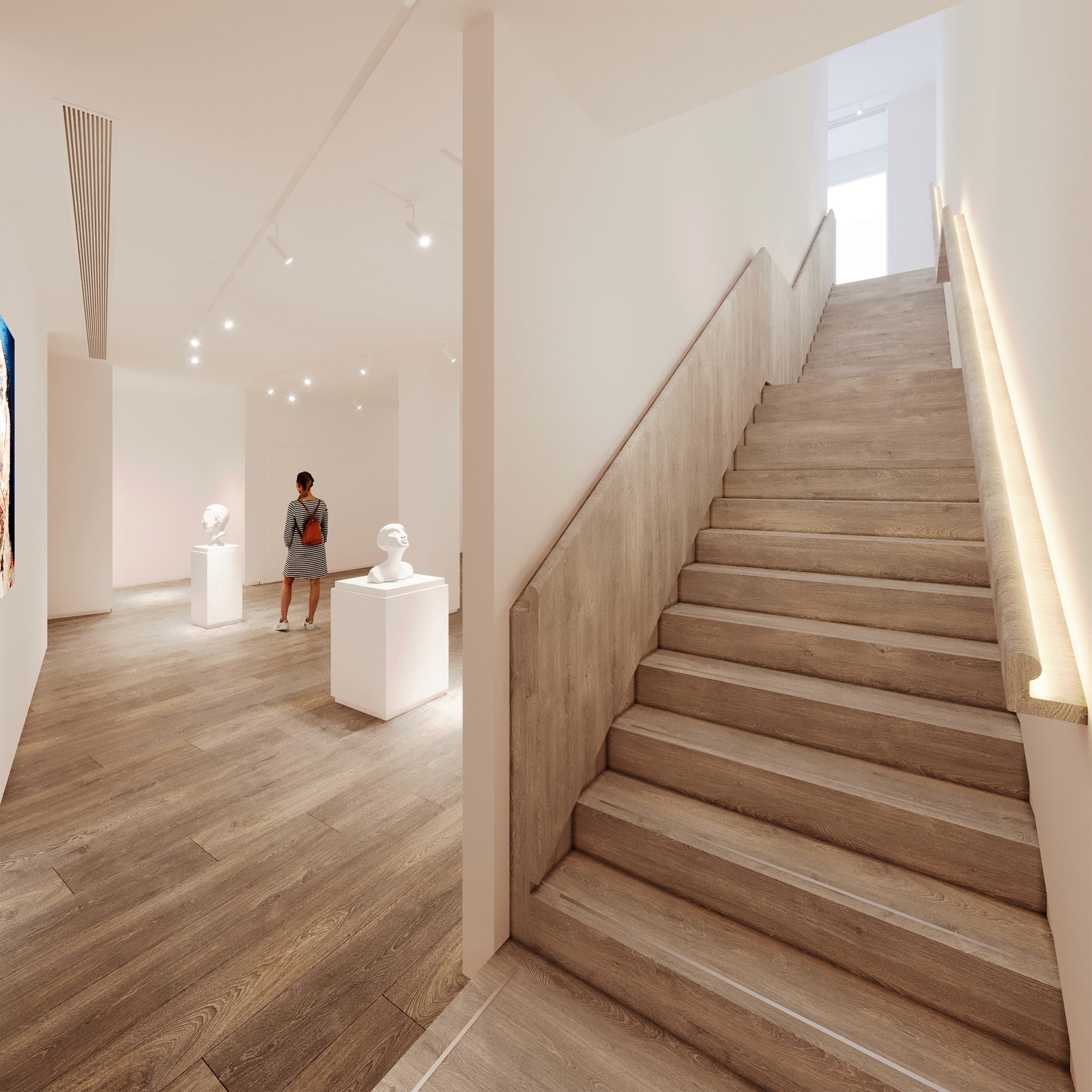 With the aid of section drawings, as well as floor plans, we were tasked to develop a 3-Dimensional 3 storey space of an upcoming opera gallery interior. Every detail from floor to ceiling was developed from scratch to match every precise detailing in the building. Using reference imagery, we staged each floor with their associated products and applied all the necessary materials in 8K to ensure hyper realism. To bring each surface and area to life we applied lighting as it would be portrayed naturally through each window and through the gallery.