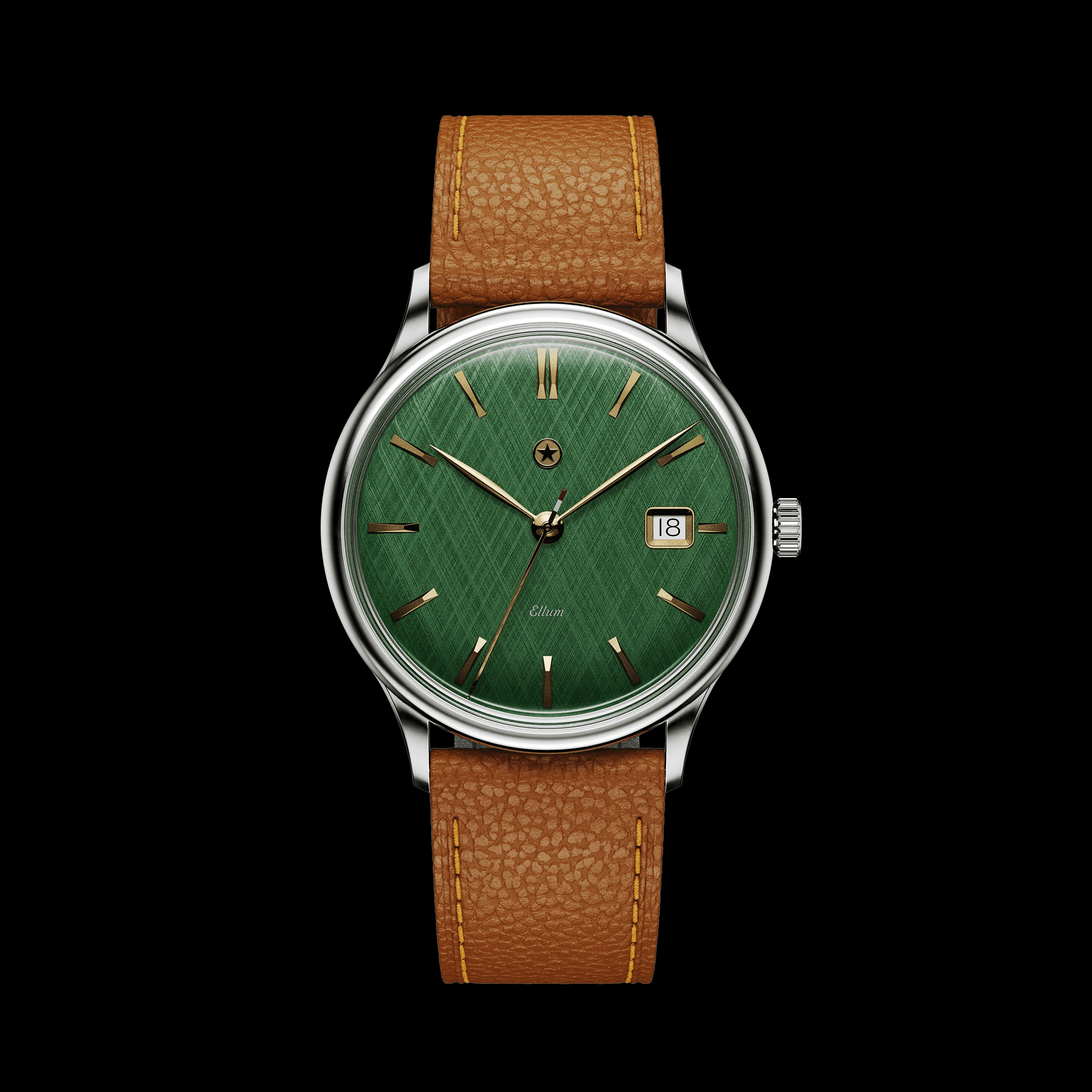 The Ellum Collection is crafted for lovers of minimalism and elegance. Its slim profile, under 10mm thick, easily slips under a shirt cuff, making it perfect for formal wear. The domed dial features finely balanced polished and brushed indices, adding depth to its simple design. A seamless caseback completes the watch’s sleek, refined look. Renderologists was tasked in developing the CAD for this timepiece from the ground up; from the case and textured dial to the SW270-1 movement showcased on the exhibition caseback.