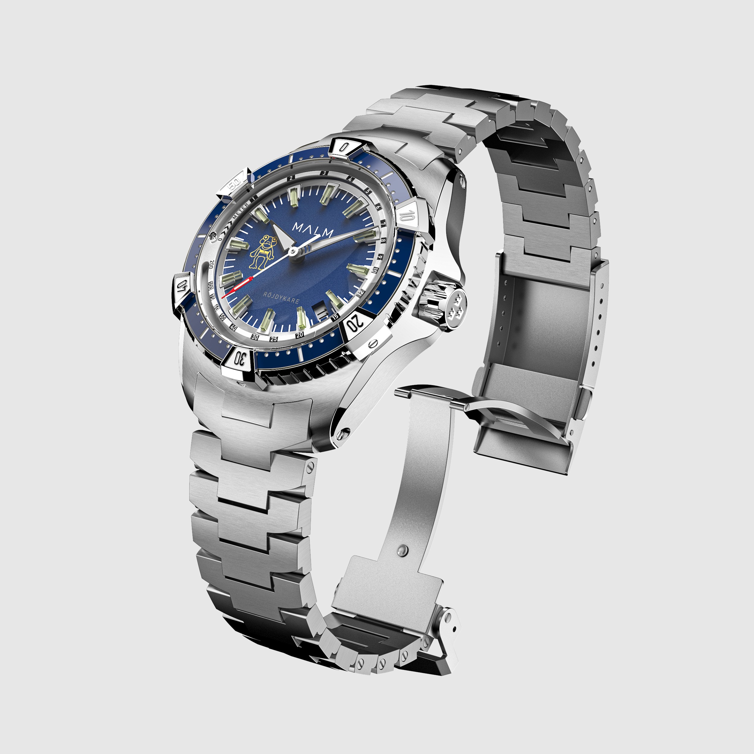 After studying detailed technicals specs, we developed a 3D CAD of the custom bracelet, as well as the dial for in the Frogdiver 44 Collection. We meticulously developed and applied delicate textures to bring this divers series to life. We created a set of profile shots as well as 2 lifestyle shots showcasing the intricate function of the capillary tube integrated into the watch. The Frogdiver 44 visuals were used for their debut web campaign to garner attention for pre orders.