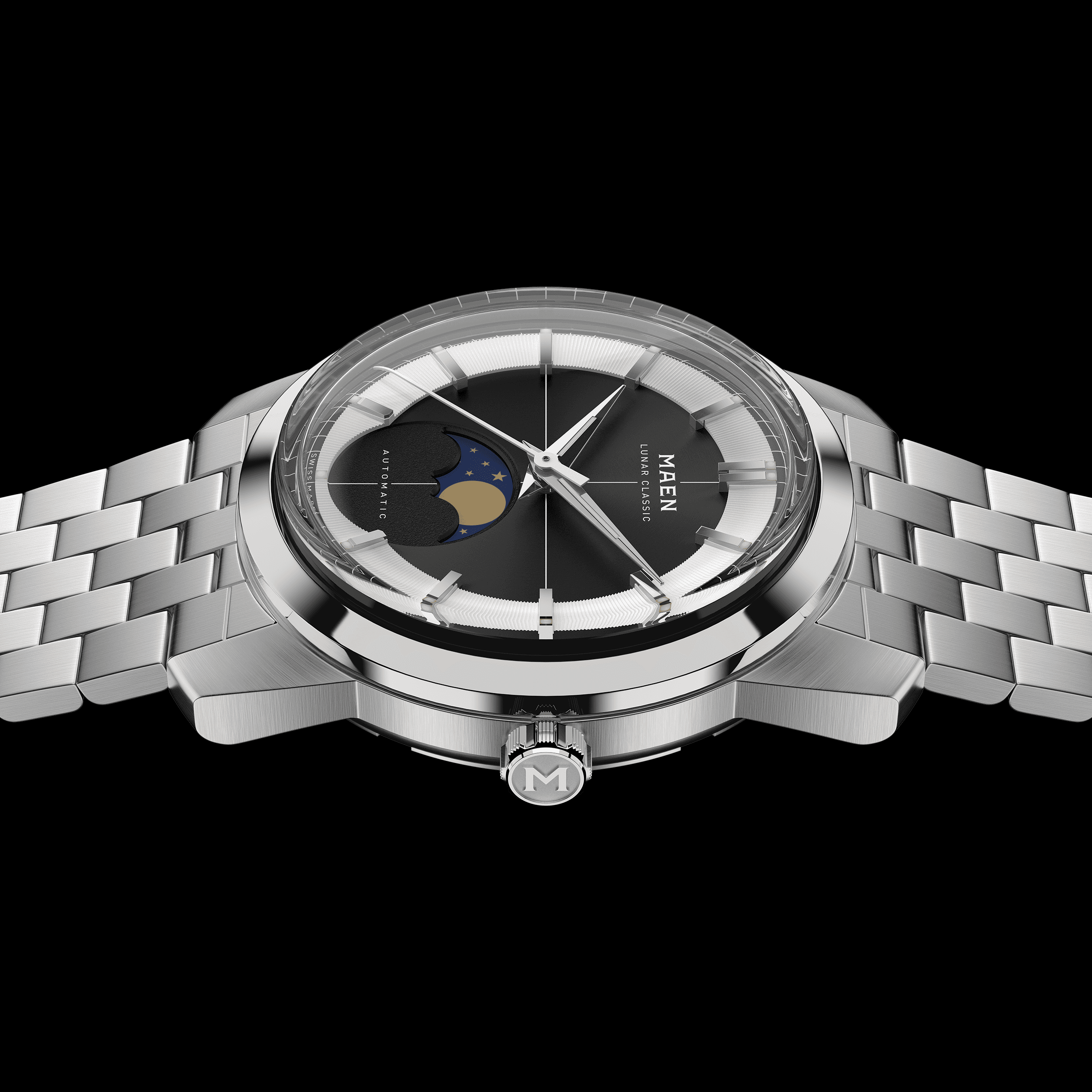 The Return of the Moonphase centers around the Lunar Classic 36, adorned with a striking new multi-layered dial centered around highlighting the moonphase complication. Beating at 28,800bph with a power reserve of approximately 40 hours, the SW280-1 was chosen as the engine for this timepiece.