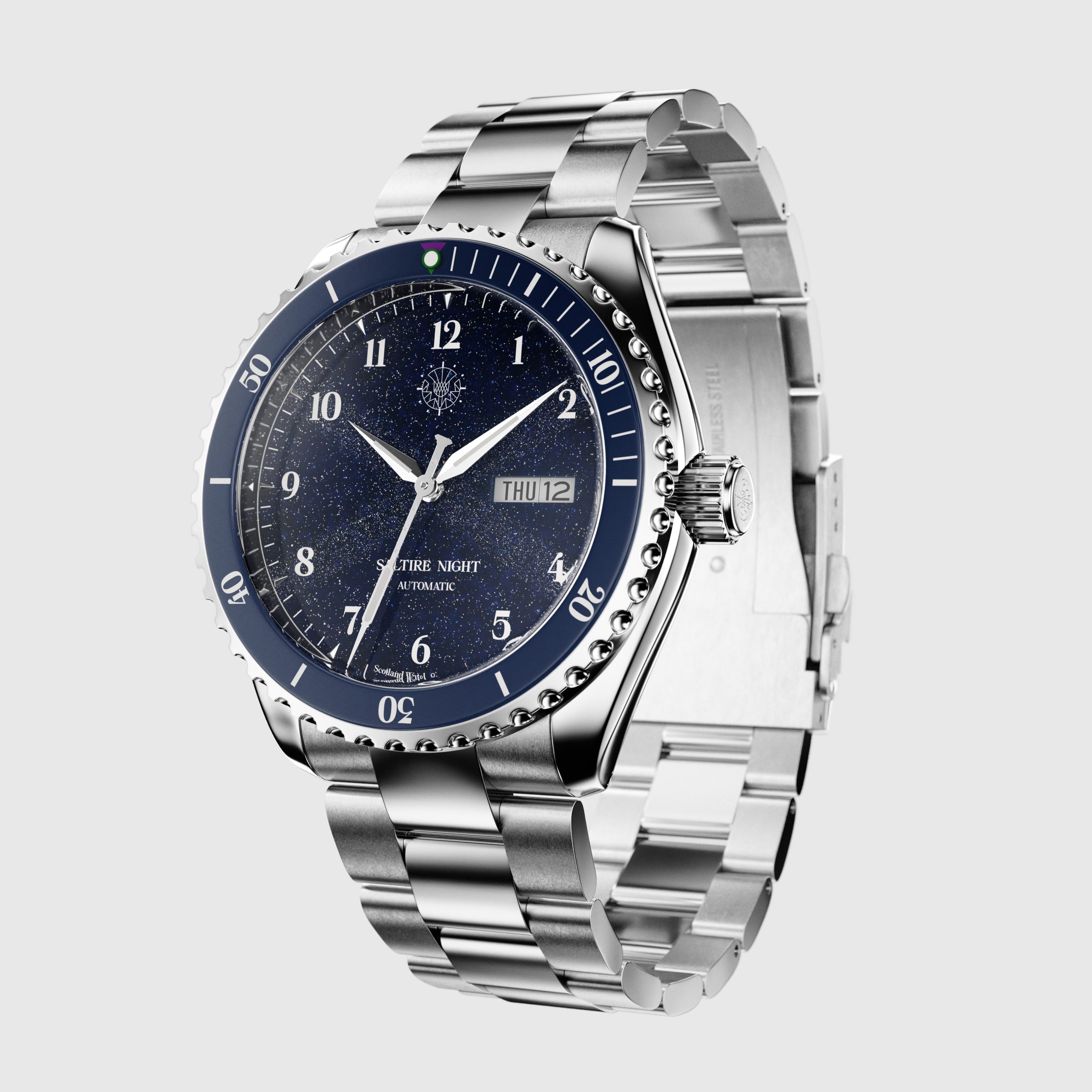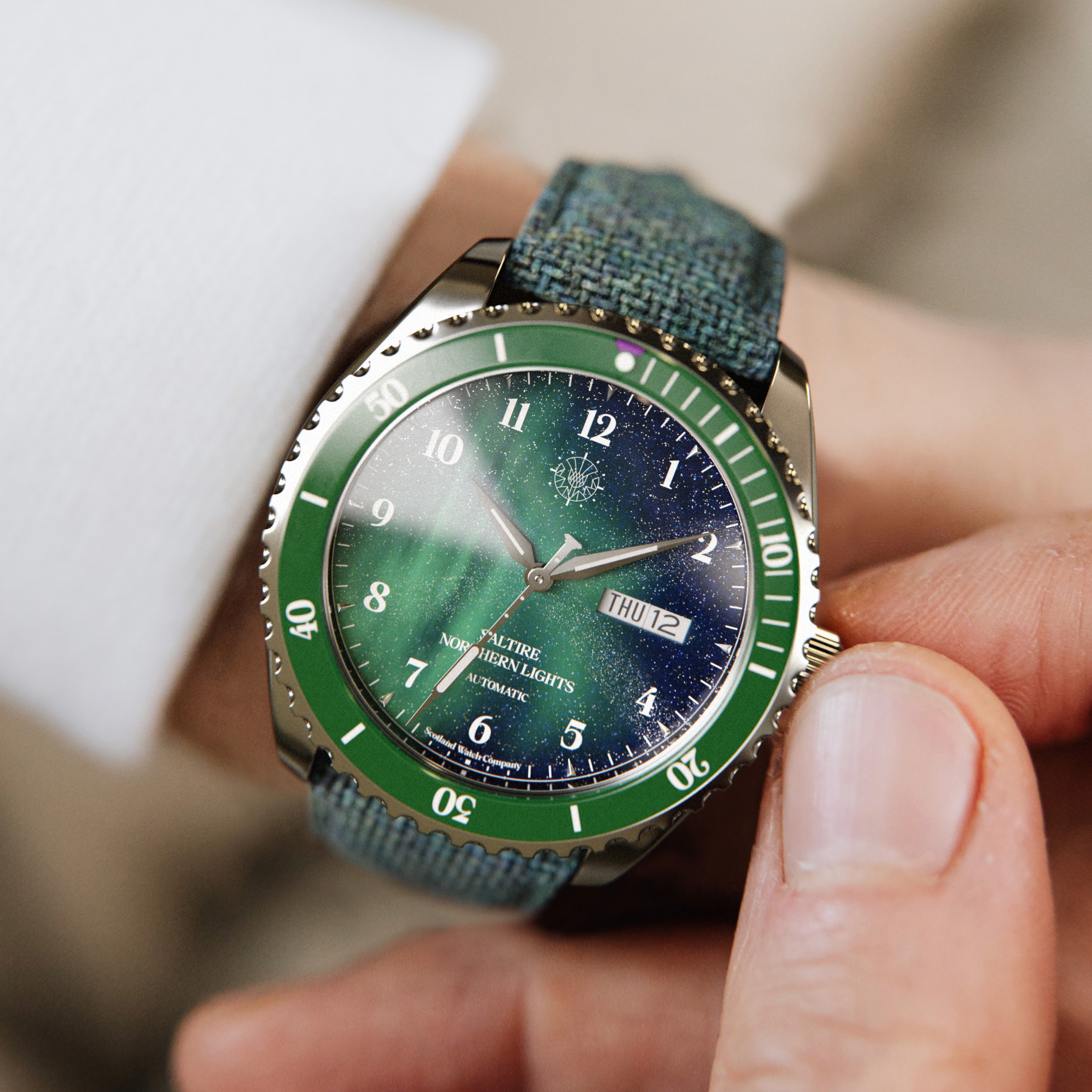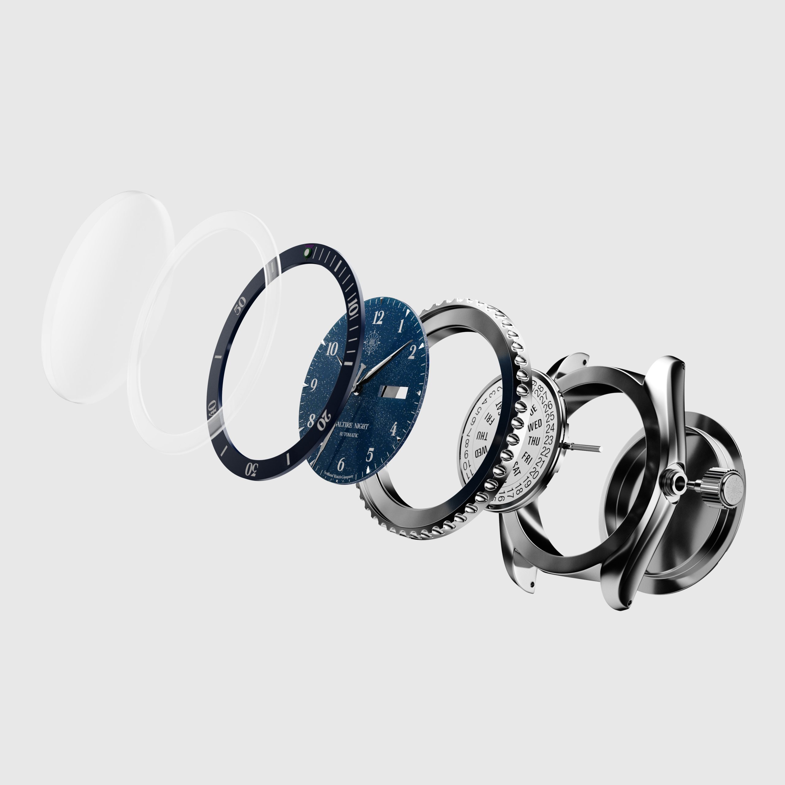 After studying photography of the watch case, we created a detailed spec report for the Saltire's components and developed a precise 3D drawing of the watch's case, dial and strap. We developed and applied delicate textures to bring each of their 3 SKUs to life, including fabric textures to produce an array of 24 visuals from profile shots, to hero and macro shots as well as 3 animated 360º visuals. The visuals were to be used for the brand's debut web launch as well as across their social channels to garner attention from enthusiasts for this unique timepiece.