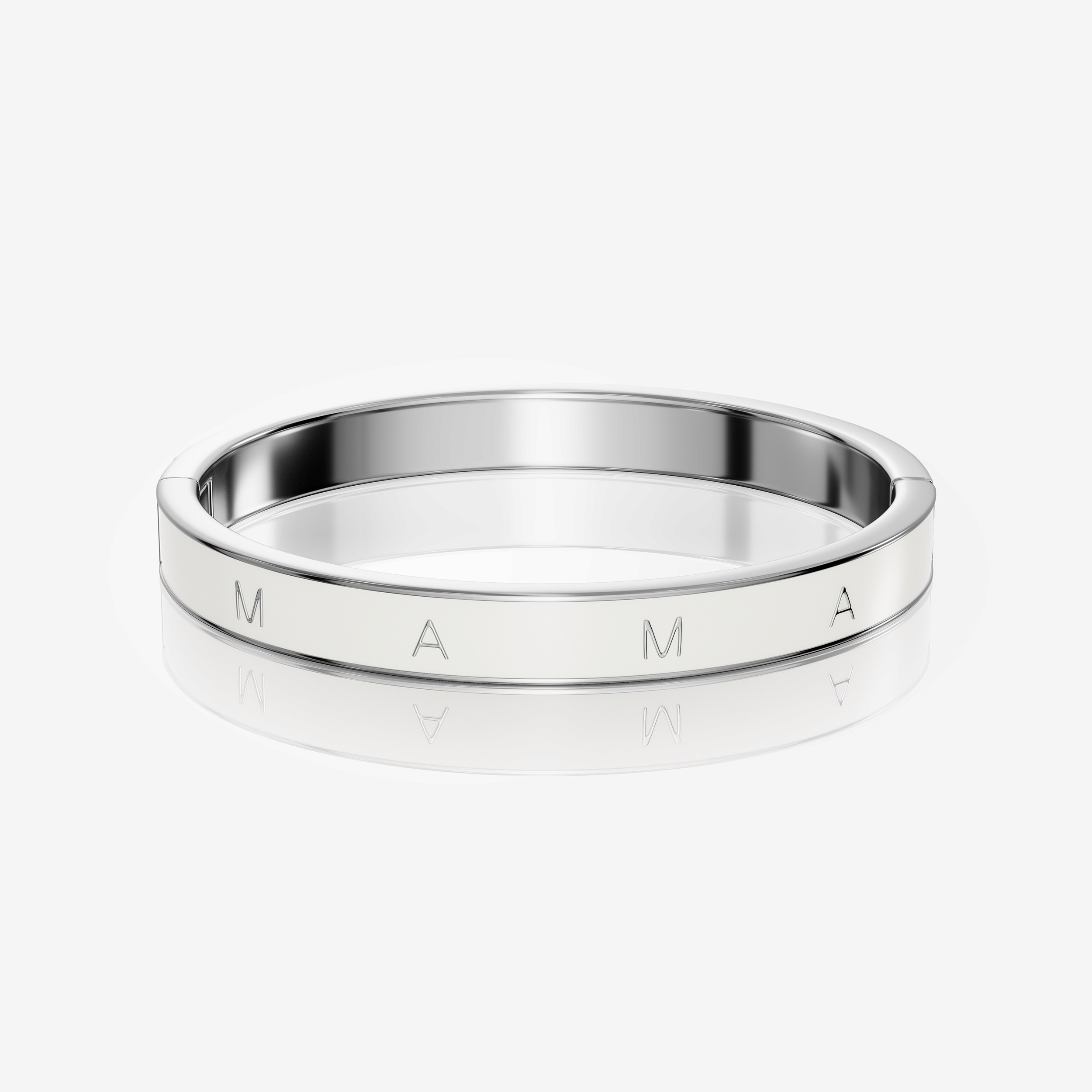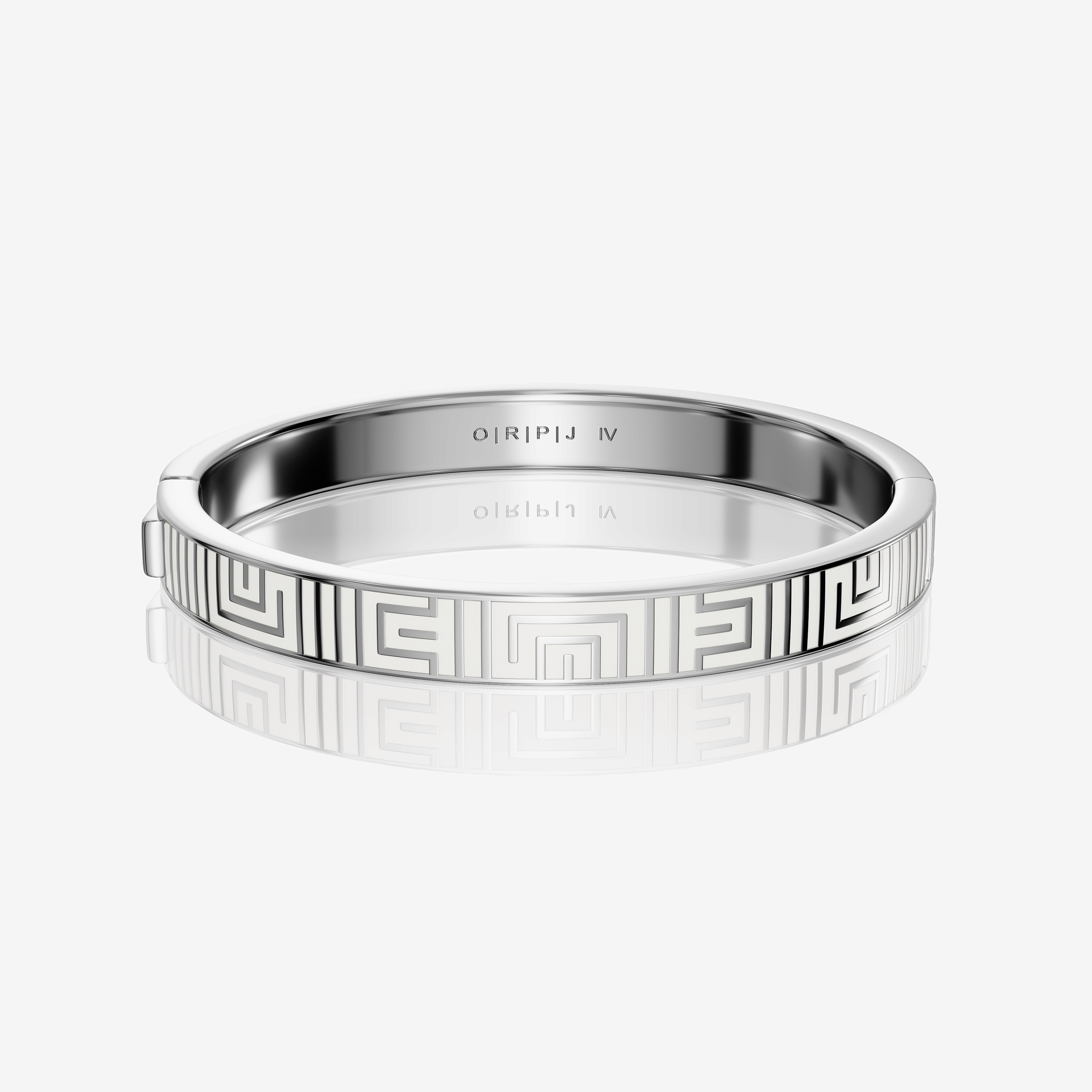A luxe statement piece — a timeless symbol of the bond between mother and child — this cuff translates deep meaning into refined form. Its enveloping, labyrinthine lines speak of protection, belonging, and connection that endures. We rendered the Vivi Coo Tapuat Cuff in sterling silver 925 and ivory resin, capturing the interplay between the polished metal and the symbol's intricate geometry across two distinct faces — each side uniquely detailed, each telling its own part of the story.